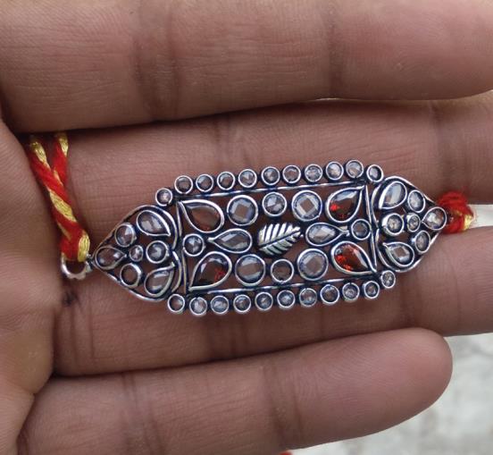 925 sterling silver Rakhi ( Brecelate) white chekar polki Brecelate in Shiny Black Finish